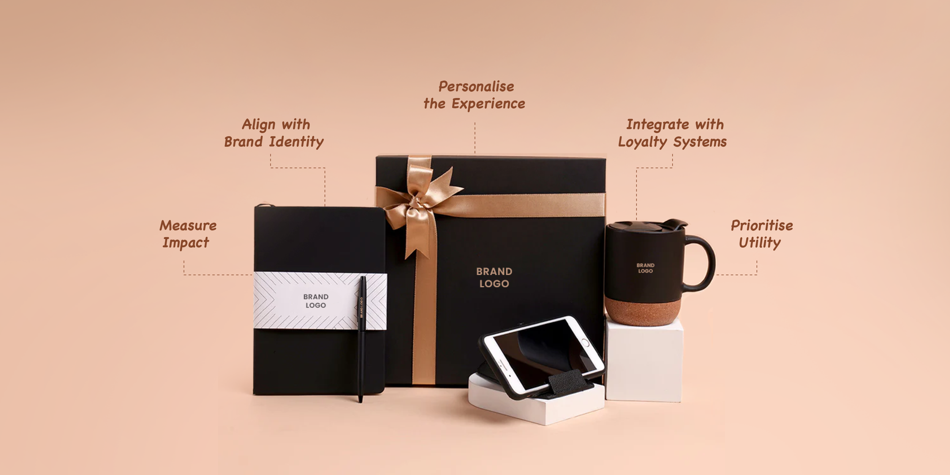 Items like apparel, bags, and tech accessories increase brand impressions in real-world settings.